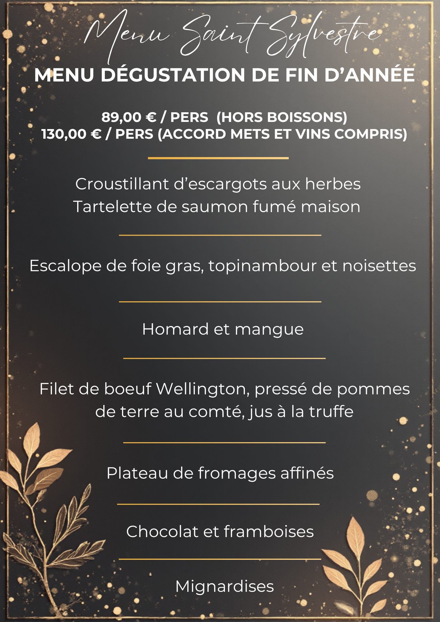 Réservez dès à présent votre réveillon de la Saint-Sylvestre. Découvrez le menu de cette soirée animée et gourmande !